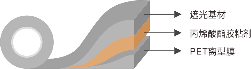 ? 采用特殊基材,涂敷優質膠粘劑的黑色遮光單面膠帶。
