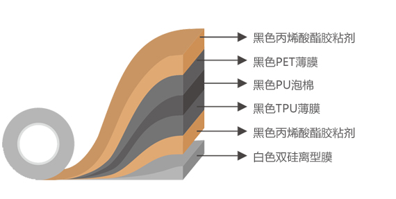 ? 采用PU泡棉復(fù)合基材,涂敷強(qiáng)粘再剝離型丙烯酸酯膠粘劑制成的泡棉膠帶。